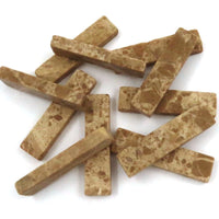 Entdecken Sie die zeitlose Schönheit von Marmorstäben, gefertigt aus Naturstein. Diese Stäbe sind 6 mm dick, 12 mm breit und etwa 5 cm lang. Sie sind leicht geschliffen und nicht mit einem schützenden Versiegler behandelt, sodass die natürliche Struktur und Farbvariationen vollständig sichtbar bleiben. Jeder Stab ist ein Unikat und kann feine Unterschiede in Farbton und Maserung aufweisen – ein typisches Merkmal von Naturstein. Das macht dieses Material besonders geeignet für Mosaikarbeiten und dekorative Anwendungen, bei denen Authentizität und natürliche Schönheit im Mittelpunkt stehen. Zur Farbvertiefung und zum Schutz der Oberfläche empfehlen wir die Verwendung eines geeigneten Steinöls oder Naturstein-Versieglers. Dies hebt die warmen Farbtöne hervor und bietet zusätzlichen Schutz vor Schmutz und Feuchtigkeit. Bitte beachten: Es handelt sich um ein empfindliches Naturprodukt, leichte Brüche beim Transport sind möglich. Die Farbe auf dem Foto zeigt den Marmor nach der Behandlung mit Leinöl. Unsere Kollektion umfasst klassische Mosaikmaterialien wie Marmor, Smalti von Dona aus Spilimbergo und Millefiori tausend Blumen von Effetre. Diese Materialien sind für ihre Schönheit und Qualität bekannt und in der Mosaikwelt sehr beliebt. Marmor bietet ein elegantes Aussehen, Smalti hat leuchtende Farben und Glanz, und Millefiori fügt ein verspieltes Element hinzu. Mit diesen klassischen Materialien können Sie schöne und dauerhafte Mosaike herstellen.